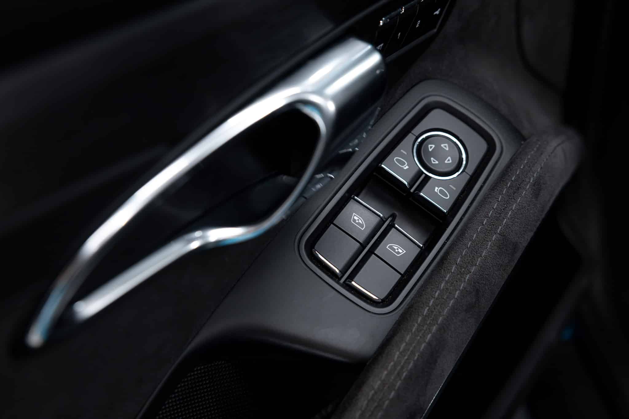 Het exterieur is uitgevoerd in een diepe, glanzende blauwe tint die het gespierde silhouet van de Targa extra accentueert. De brede wielkasten, sportieve 20-inch lichtmetalen velgen en subtiele zwarte accenten dragen bij aan een krachtige en elegante uitstraling.