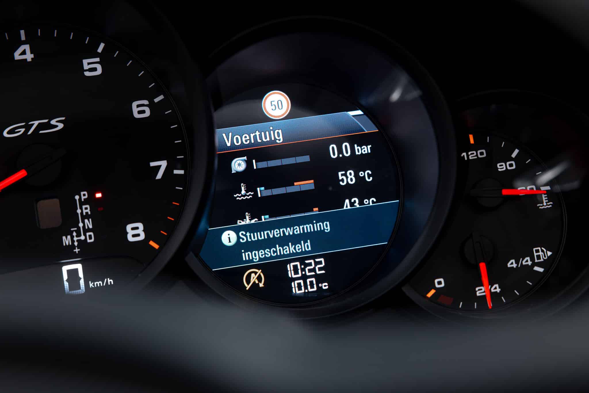 Binnen biedt deze Porsche een luxe en dynamische cockpit-ervaring. De sportstoelen geven uitstekende zijdelingse steun tijdens zowel ontspannen ritten als sportief bochtenwerk. De combinatie van hoogwaardige materialen en een ergonomische inrichting plaatst de bestuurder centraal. Comfort- en infotainment-functies zijn intuïtief geïntegreerd voor een optimaal dagelijks gebruik.